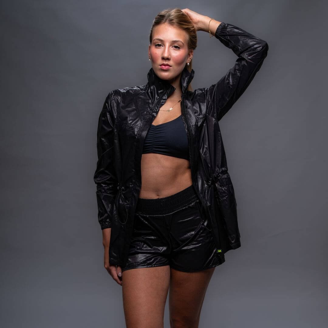 ✅ Fechamento com zíper personalizado “HIIT” e cobre-zíper, garantindo mais sofisticação ao design.